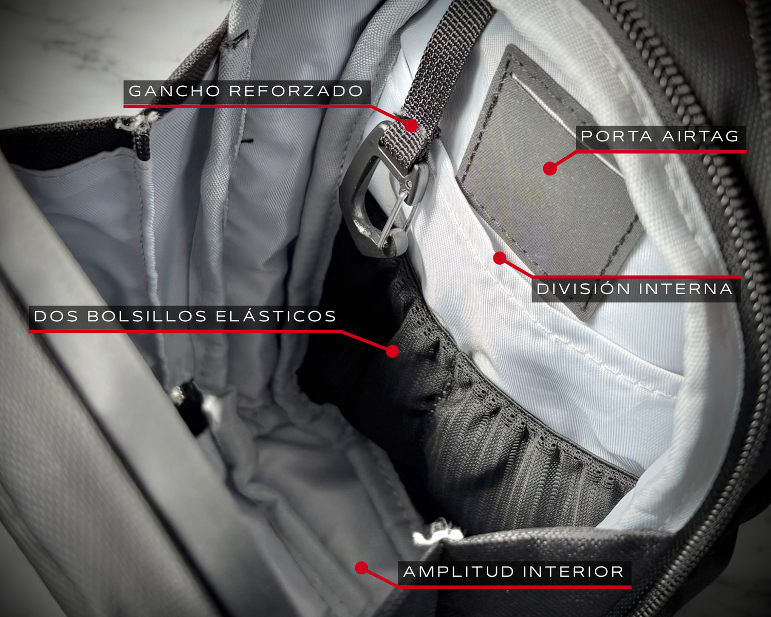Amplio, con bolsillos estratégicos para que todo esté ordenado y siempre a mano.